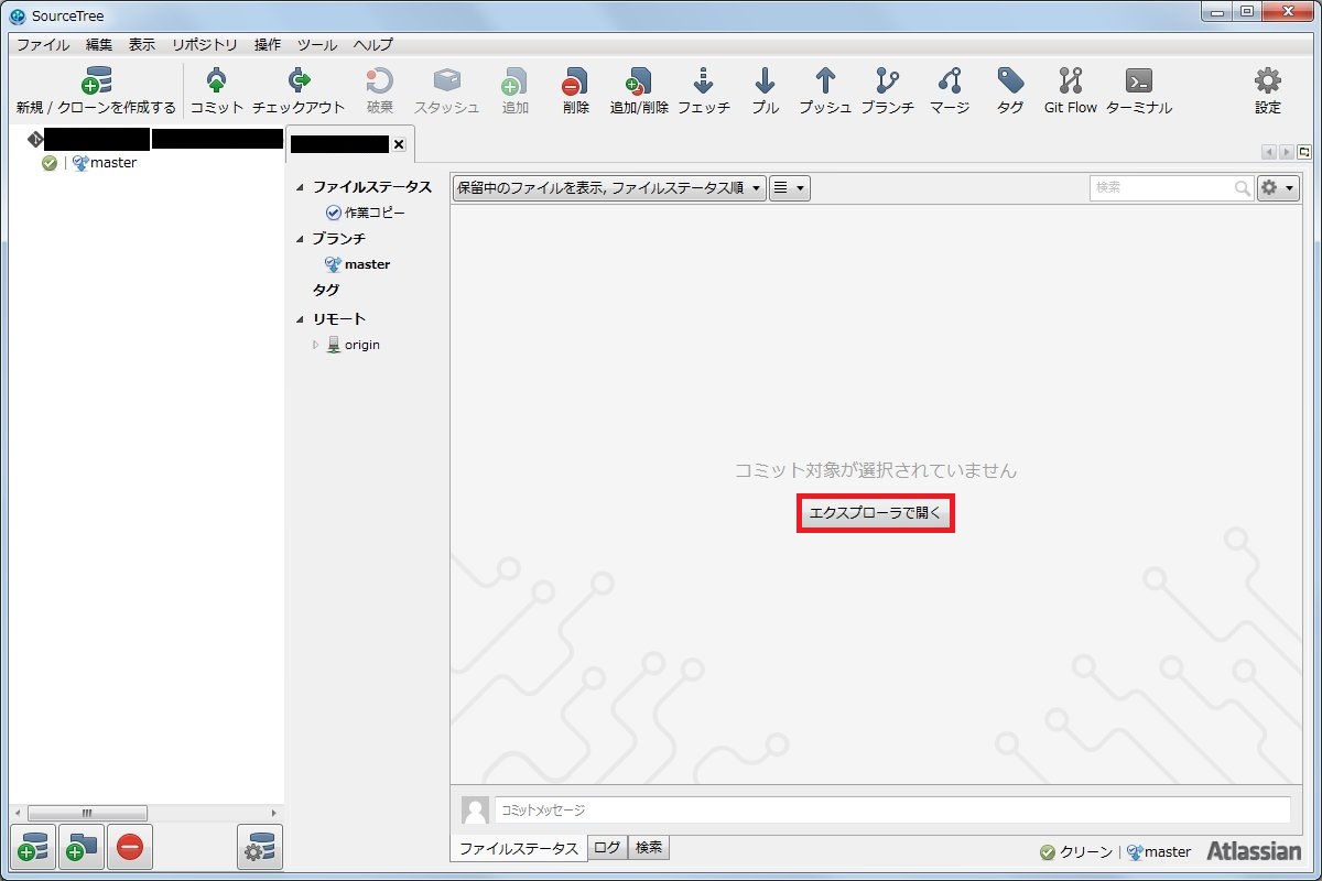 ソースを配置したら、SourceTreeの「エクスプローラで開く」ボタン押下。