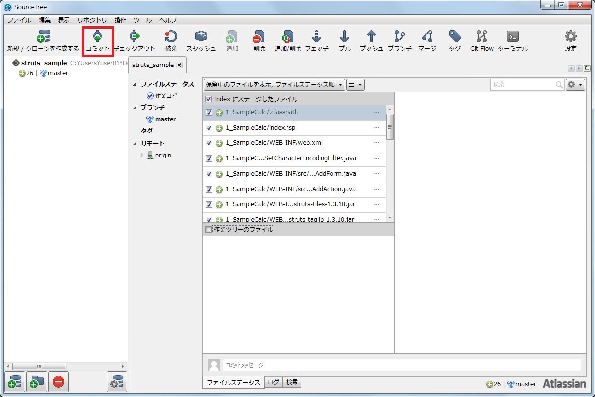 Strutsの学習ページで使用するソースコード類をGitHub上で管理したかったので、GitのGUIクライアントツールであるSourceTreeの準備、使い方と合わせて手順を残します。